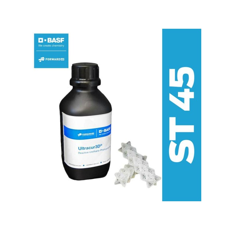 Les variantes Ultracur3D® ST 45, ST 45 M et ST 45 B de Forward AM représentent une série de photopolymères uréthane réactifs adaptés aux exigences élevées, alliant solidité exceptionnelle, résilience durable et résistance aux impacts. Idéales pour fabriquer des composants fonctionnels via impression 3D nécessitant haute précision et solidité mécanique, ces résines garantissent une production rapide et des finitions superficielles de premier ordre, disponibles en versions transparente et noire.
