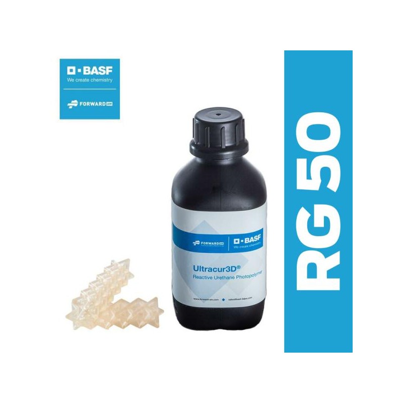 Ce produit de BASF, Ultracur3D RG 50, est une résine transparente et rigide qui combine efficacement solidité, fermeté et tolérance à des températures élevées. Le photopolymère d'uréthane Ultracur3D® RG 35, proposé par Forward AM, se distingue par sa réactivité élevée, sa viscosité moyenne, et est idéal pour les usages exigeant une rigidité supérieure. Ce matériau est caractérisé par une excellente stabilité, une rigidité remarquable, une résistance optimale aux températures et une absorption d'eau minime, ce qui le rend parfait pour la fabrication en impression 3D de composants fonctionnels de haute qualité.