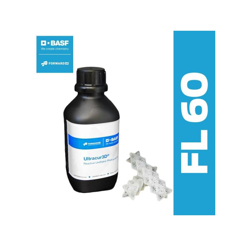 La résine BASF Ultracur3D FL 60 Flexible (Transparent) se distingue par sa souplesse et son confort au toucher, offrant une dureté modérée de Shore 60 A. Ce photopolymère d'uréthane, développé par Forward AM, est spécialement conçu pour des usages nécessitant une haute flexibilité, tout en assurant une résistance optimale aux déchirures. Cette résine se caractérise par une souplesse remarquable et une agréable sensation au toucher, tout en garantissant une stabilité couleur durable.