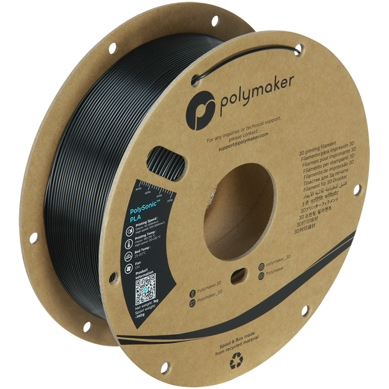 Découvrez le Filament Polymaker PolySonic™ PLA Noir, une avancée majeure pour l'impression 3D FDM, spécialement formulée pour les imprimantes à haute vitesse.
