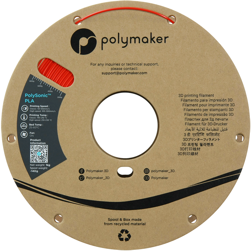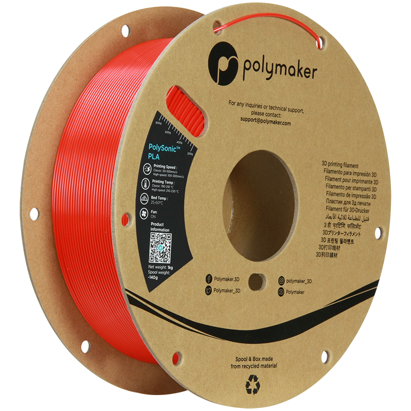Le PolySonic™ PLA est la réponse de Polymaker aux besoins des imprimantes 3D modernes capables d'atteindre des vitesses fulgurantes, offrant des performances que les PLA traditionnels ne peuvent égaler.