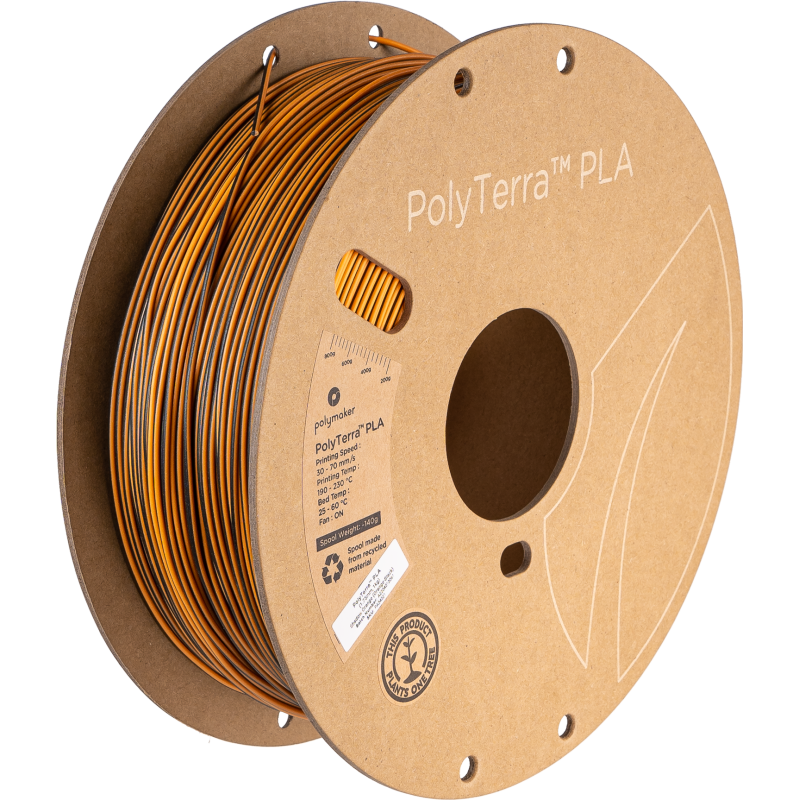 Le PolyTerra PLA Dual Noir Orange est formulé avec une technologie unique appelée "Fully Bio Compound (FBC)". Celle-ci utilise un mélange d'ingrédients tels que l'amidon de maïs, la betterave et le blé, qui sont entièrement biodégradables. Vous pouvez donc imprimer en toute conscience, sachant que votre filament a un impact environnemental réduit.