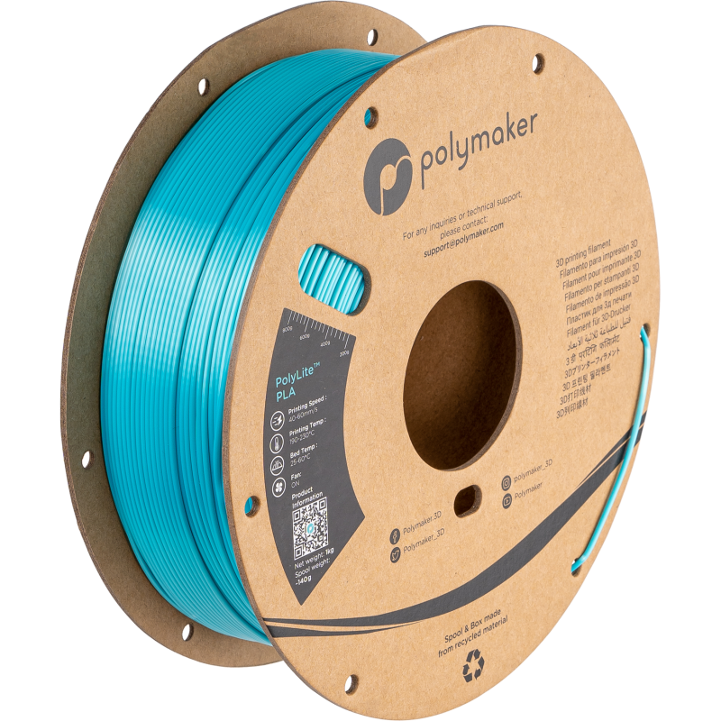 PolyLite PLA est conçu pour une impression fiable, des performances constantes, une faible odeur et un prix abordable. PolyLite PLA est également fabriqué avec la technologie brevetée Jam-Free de Polymakers. Ce filament de haute qualité offre des performances fiables, présente un gauchissement/rétrécissement minimal par rapport à d'autres matériaux, et est parfait pour les applications avec des surfaces planes et des angles durs ou des tolérances serrées sur l'ajustement.