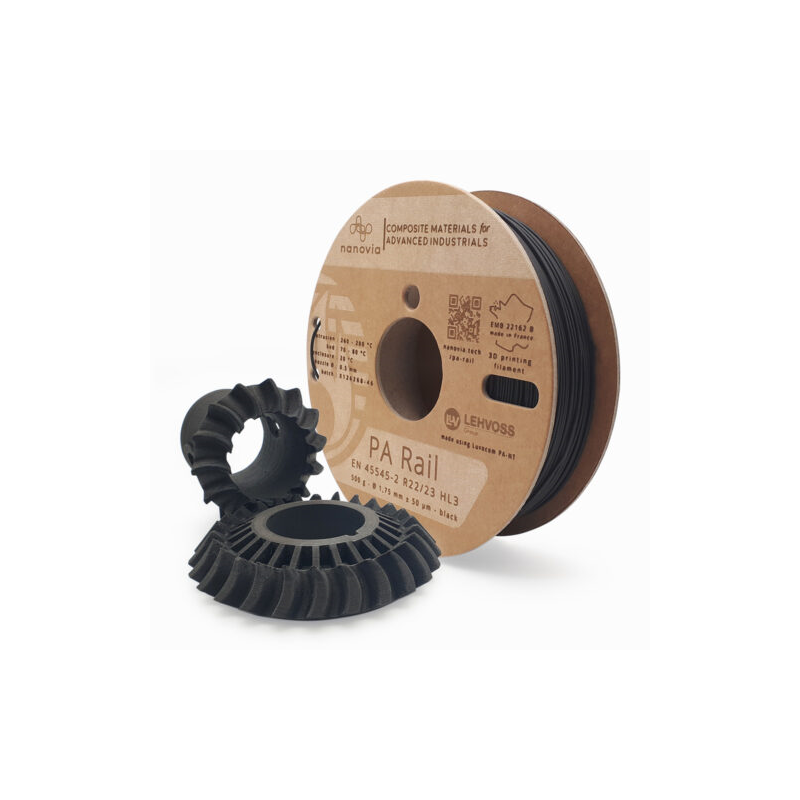 Le Nanovia PA Rail 1,75 mm - 500 g est un filament haut de gamme destiné aux professionnels et aux entreprises qui recherchent une solution d'impression 3D pour des pièces techniques, durables et répondant à des normes strictes de sécurité incendie.