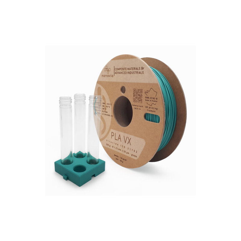 Filament Nanovia PLA VX offre des propriétés virucides certifiées qui vous permettent de créer en toute confiance des objets de la vie quotidienne, tout en contribuant à la réduction des risques de propagation d'agents contaminants biologiques.