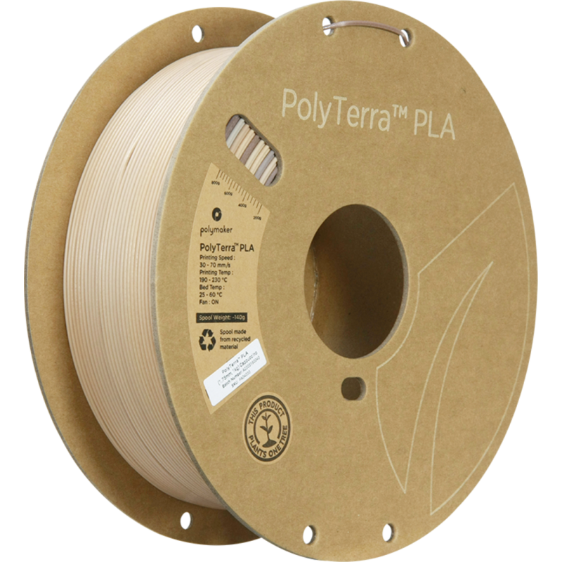 PolyTerra™️ PLA Gradient Cappuccino est un exemple de durabilité. Il est créé avec un mélange de PLA biodégradable à base d'amidon de maïs, de betterave et de blé, ainsi que de minéraux organiques. Pour chaque bobine vendue, Polymaker s'engage à planter un arbre, contribuant ainsi à la reforestation et à la préservation de la planète.