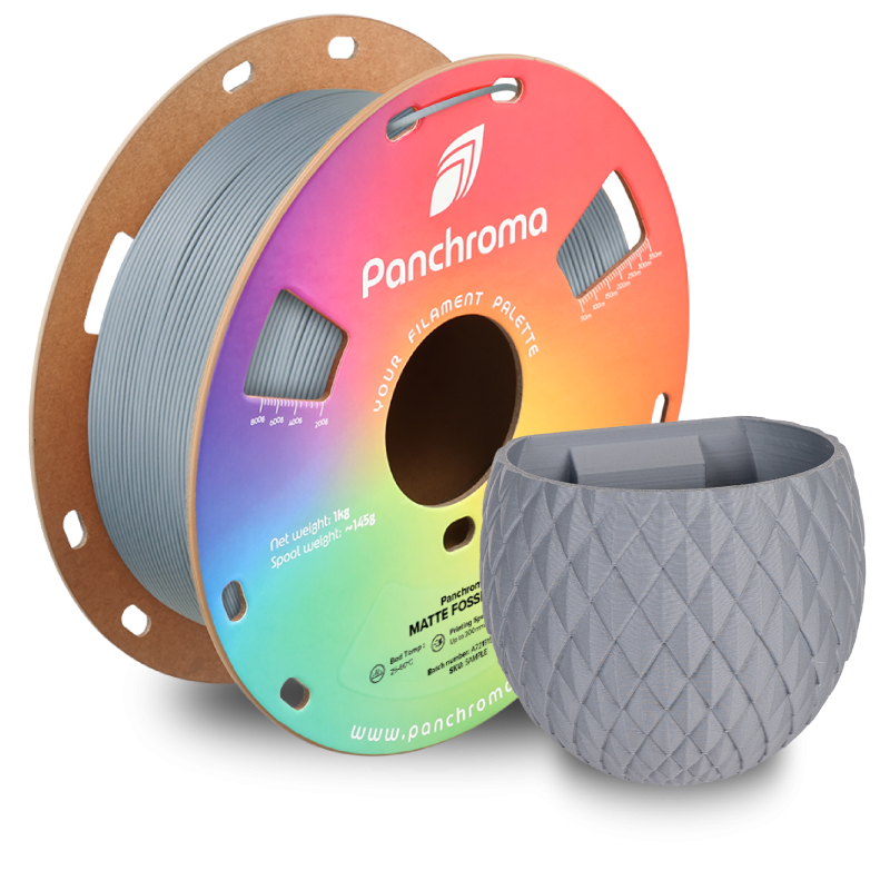 Le Filament Polymaker Panchroma™ PLA Matte Fossil Grey 1,75 mm - 1 KG est un excellent choix pour les makers qui recherchent un filament PLA à la fois facile à imprimer et offrant une finition esthétique supérieure avec un aspect minéral et naturel. Il vous permettra de donner une touche de modernité et d'authenticité à toutes vos créations.