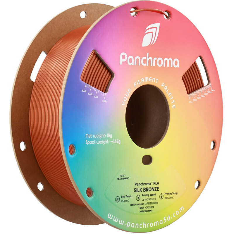 Le Filament Polymaker Panchroma™ PLA Silk Bronze 1,75 mm - 1 KG est un excellent choix pour les makers qui recherchent un filament PLA à la fois facile à imprimer et offrant une finition esthétique supérieure dans une couleur vive et élégante. Il vous permettra d'apporter une touche de dynamisme et de raffinement à toutes vos créations.