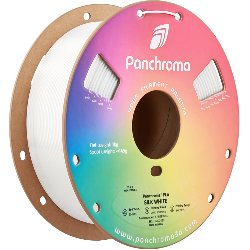 Le Filament Polymaker Panchroma™ PLA Silk White est un excellent choix pour les makers qui recherchent un filament PLA à la fois facile à imprimer et offrant une finition esthétique supérieure dans une couleur pure et élégante.