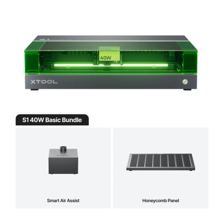 Le pack basic xTool S1 se compose du panneau nid d'abeille pour les découpes et le Air Assist qui évacue les fumées