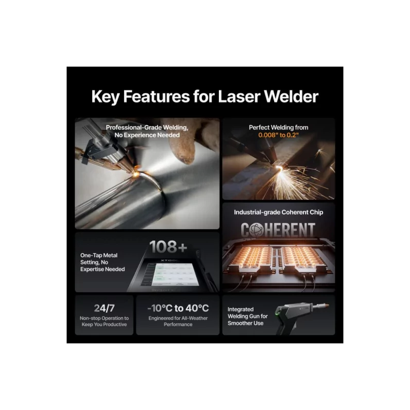 • Soudage Laser de Précision : Obtenez des soudures d'une propreté et d'une solidité exceptionnelles, certifiées SGS. Le pistolet de soudage ultra-léger (550g) et les 108+ paramètres prédéfinis sur l'écran tactile intelligent de 8 pouces rendent le soudage accessible même pour les non-experts. Soudez l'acier inoxydable, l'acier carbone et d'autres métaux jusqu'à 5 mm d'épaisseur avec une finition parfaite.